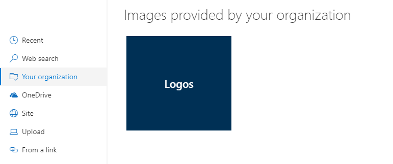 Organization assets are used as common, approved, images that can be used in the context of SharePoint pages. A SharePoint administrator can define 1 or more libraries as organization assets libraries. When defined, the libraries show up under the “Your Organization” heading in the file selector panel, when editing pages.